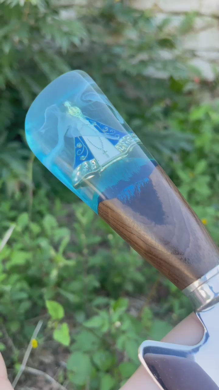 A Faca Padroeira é mais do que uma ferramenta de corte – ela é uma homenagem à fé e à tradição. Forjada com precisão artesanal e inspirada na Padroeira do Brasil, sua lâmina traz o símbolo de proteção e devoção, ideal para quem busca força e beleza em um único produto. Seja para colecionadores ou para quem valoriza o poder de um símbolo sagrado no dia a dia, esta faca é um lembrete de que o sagrado pode estar presente em cada detalhe. Com gravação personalizada e acabamentos luxuosos, a Faca Padroeira é uma peça única que combina espiritualidade e funcionalidade.